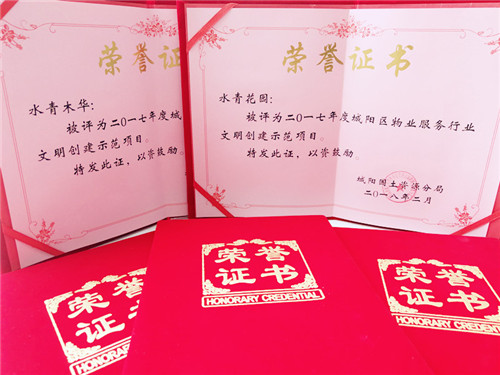被評為“城陽區物業服務行業文明創建標兵企業”