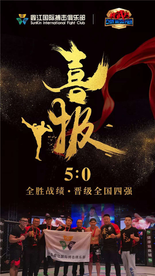 100多個日日夜夜,16支國內頂尖的MMA專業戰隊,120余場廝殺角逐......這場搏擊大戰,不僅展現了鑫江搏擊的5位大將的格斗技巧,更向全國乃至世界,展現了鑫江搏擊的昂揚斗志與所向披靡的實力!