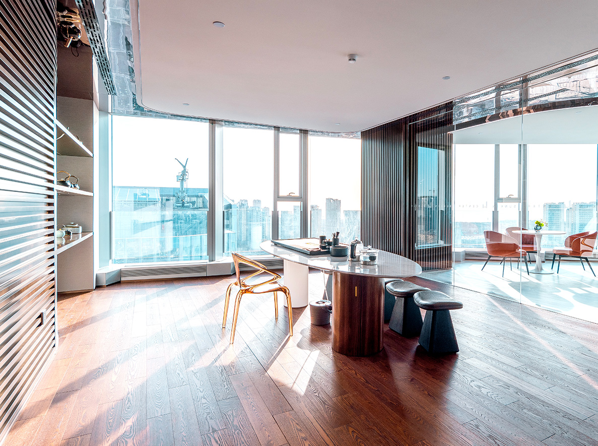 鑫江中心是鑫江集團投資的高端商務綜合體項目。項目擇址國家級經濟新區青島西海岸,據唐島灣金融科創區核芯地段,是一座集辦公、科研等功能于—體的國際超甲級寫字樓。項目總建筑面積約18萬㎡(含商業),緊鄰濱海大道及唐島灣公園,三面海一面城,優享270°一線海景資源,樓體采用鋼骨混凝土框架核心筒結構,U型雙子塔造型,獨創海浪式大堂入口,建面約2500㎡共享大堂,樓間約58.8m無柱大跨度、18.8m挑空空間設計,筑就青島市巔峰商務新封面;項目引入全球前言科技,打造全新智慧樓宇系統,采用新型VAV中央空調系統,運行體量約8萬㎡,是目前青島在建單體運行體量最大的商務項目,更加節能高效環保。